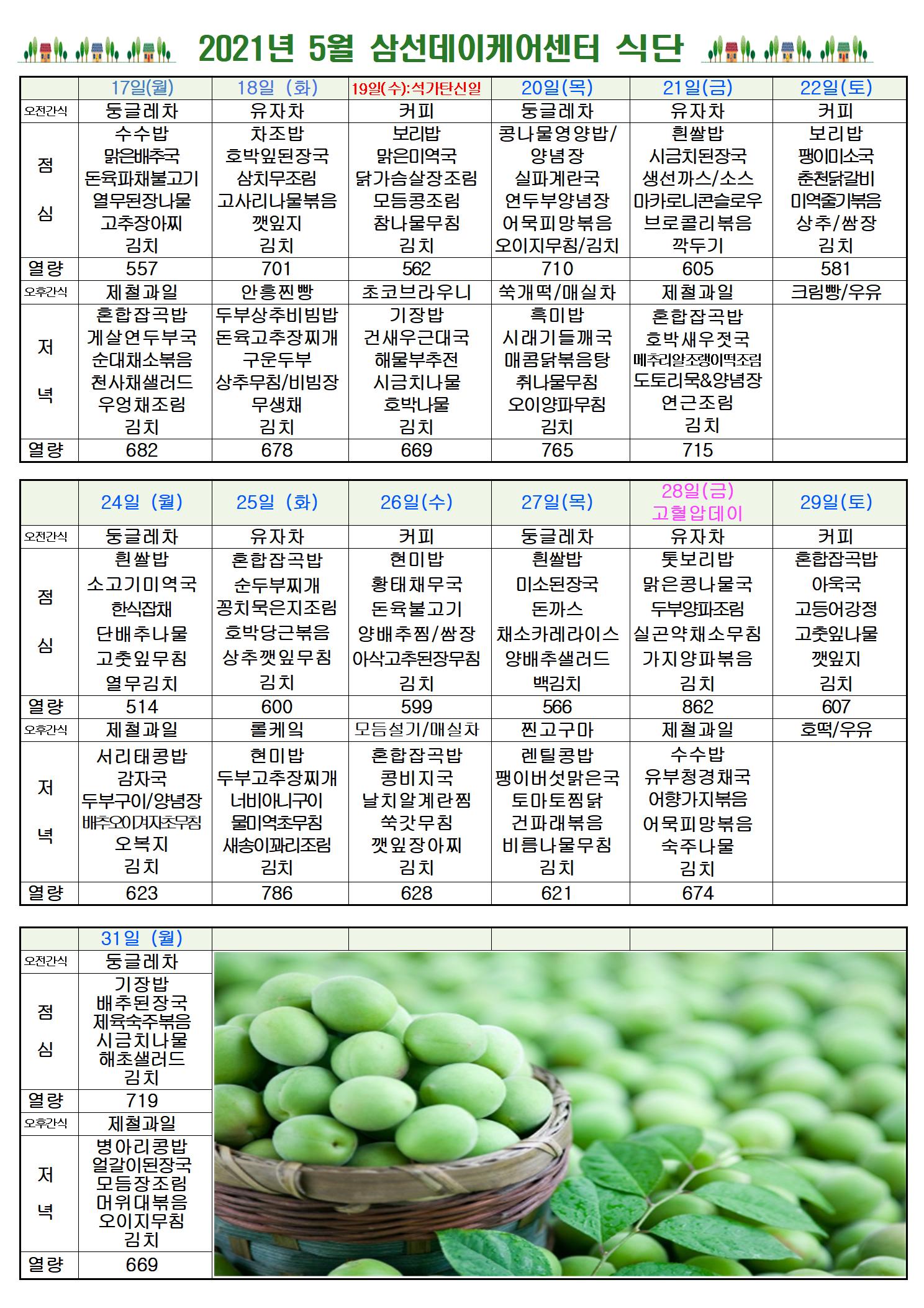 2021³â 5¿ù ½Ä´ÜÇ¥ ÷ºÎÇÕ´Ï´Ù. °¨»çÇÕ´Ï´Ù.