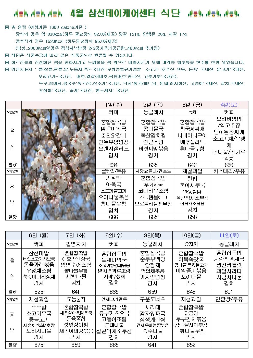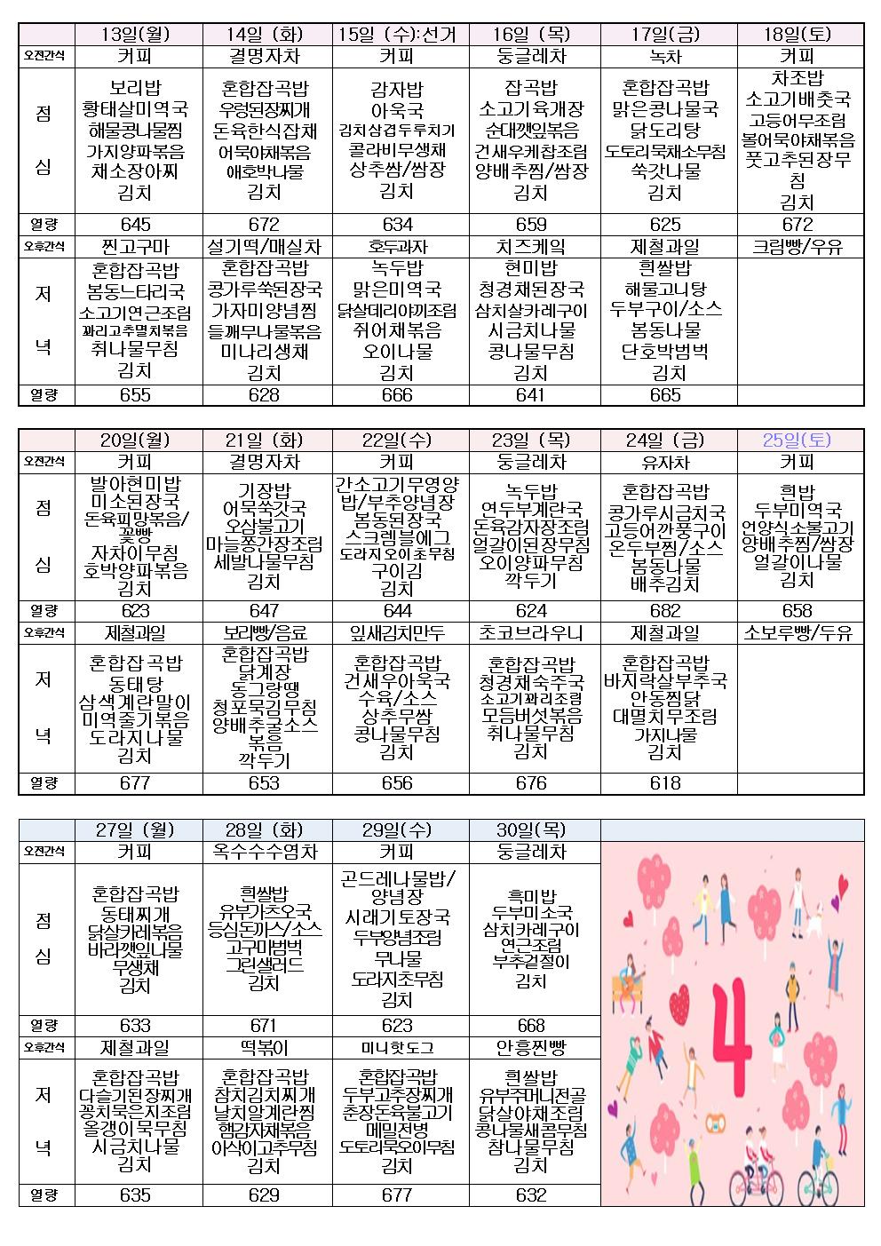 4¿ù ½Ä´ÜÇ¥ ÀÔ´Ï´Ù