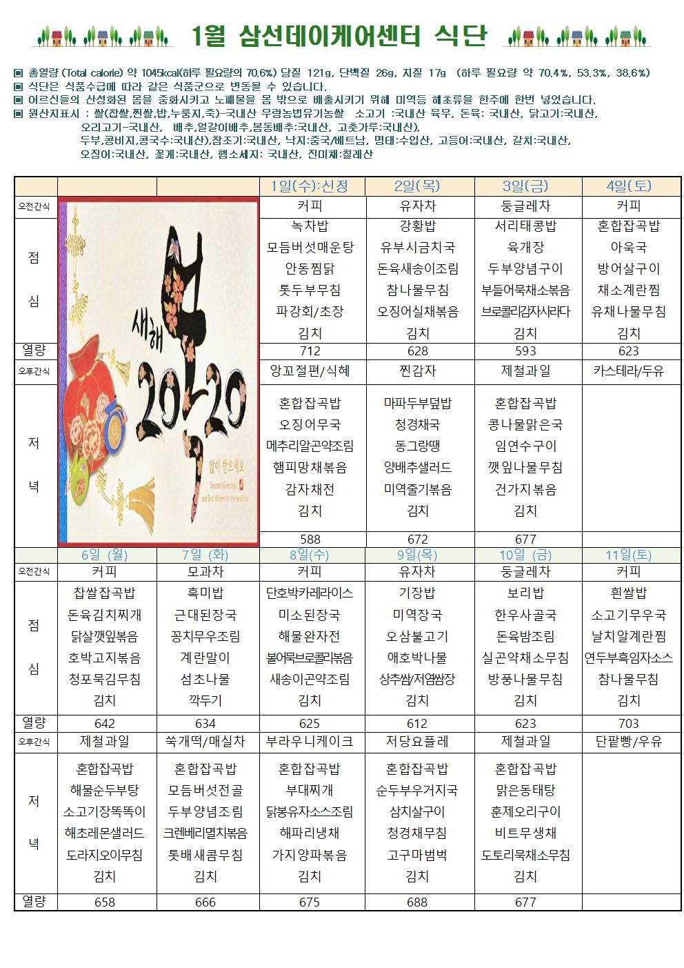2020³â 1¿ù ½Ä´ÜÇ¥ ÀÔ´Ï´Ù