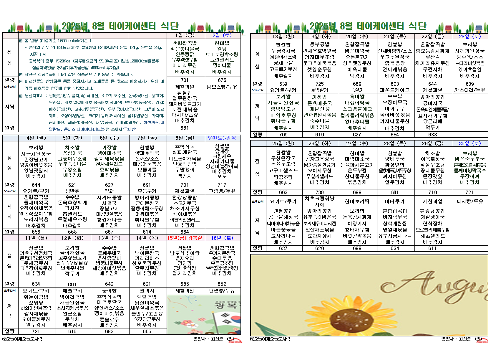 8¿ù ½Ä´ÜÇ¥ÀÔ´Ï´Ù. °¨»çÇÕ´Ï´Ù ^^