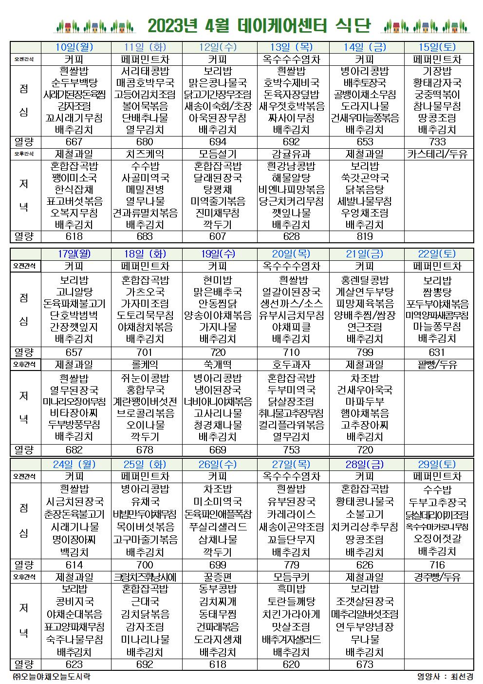2023³â 4¿ù ½Ä´ÜÇ¥