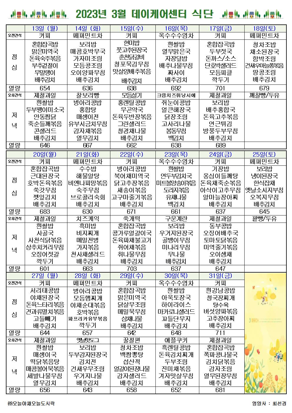2023³â 3¿ù ½Ä´ÜÇ¥