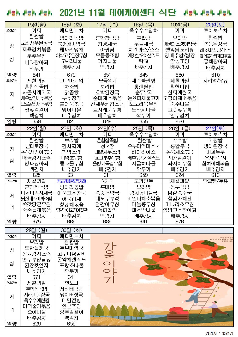 2021³â 11¿ù ½Ä´ÜÇ¥ ÷ºÎÇÕ´Ï´Ù. °¨»çÇÕ´Ï´Ù.