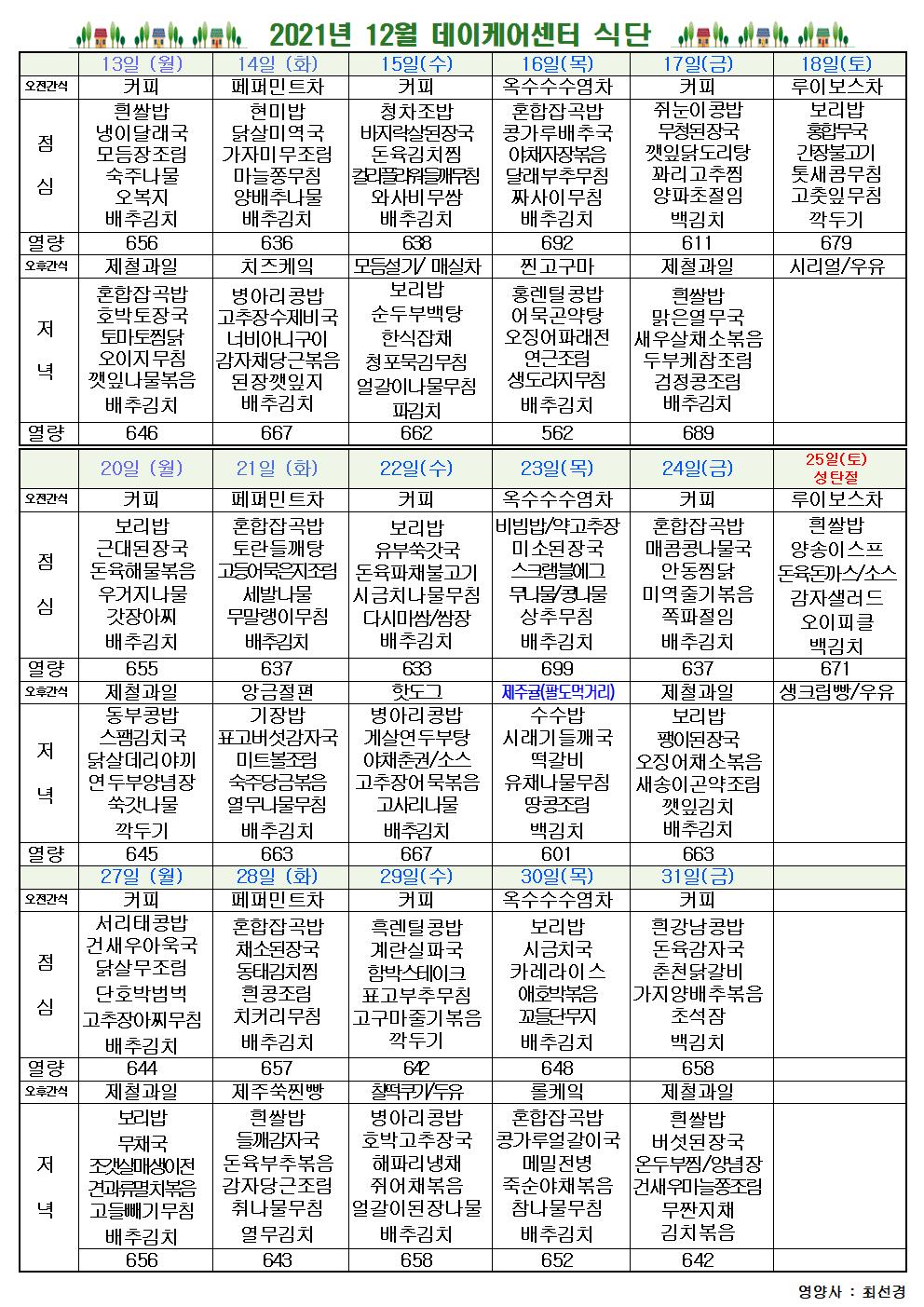 2021³â 12¿ù ½Ä´ÜÇ¥ ÷ºÎÇÕ´Ï´Ù. °¨»çÇÕ´Ï´Ù.